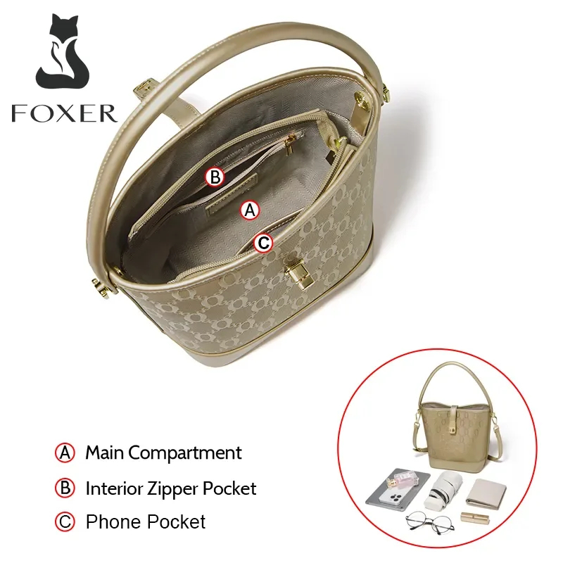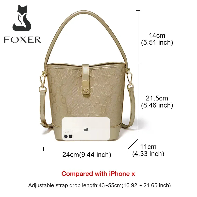 FOXER Tas Selempang Wanita Warna Tas Bucket Mewah Bergaya Tas Kurir Kulit Asli