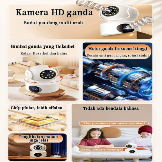 PRIBINRUIS CCTV 1080P Dual Lens Full HD 360 Rotation Auto Tracking Two-Way Voice Smart Wifi Kamera