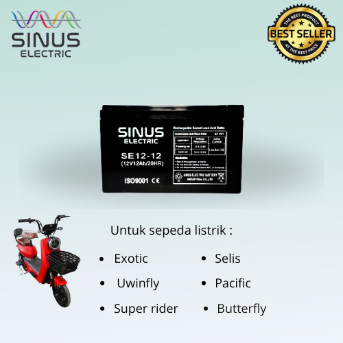 AKI BATERAI SEPEDA LISTRIK 12V 12AH PALING BAGUS SINUS