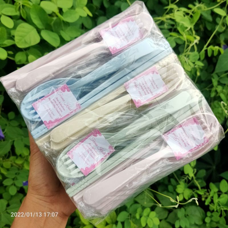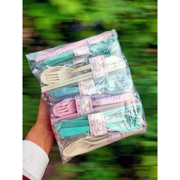 50 Set Souvenir Sendok Garpu Sumpit Lokal Kkuningan mengkilap an Plastik