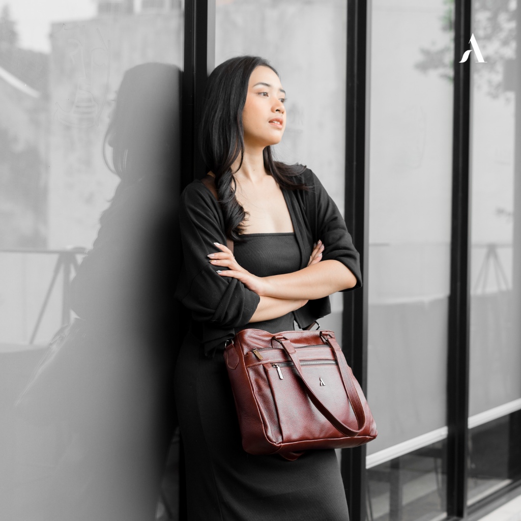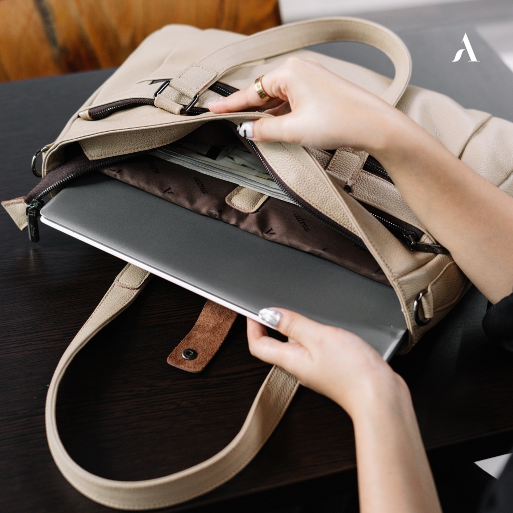 Tas Laptop Wanita Alona Lovata Totebag Kulit Sapi Asli Free Random Gift & Tali Selempang Waterproof