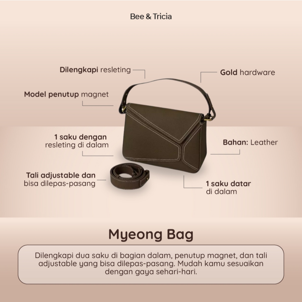 Tas Wanita Myeong Bag Kulit Hardware Resleting Slot Tambahan Tali Adjustable Lepas Pasang Timeless