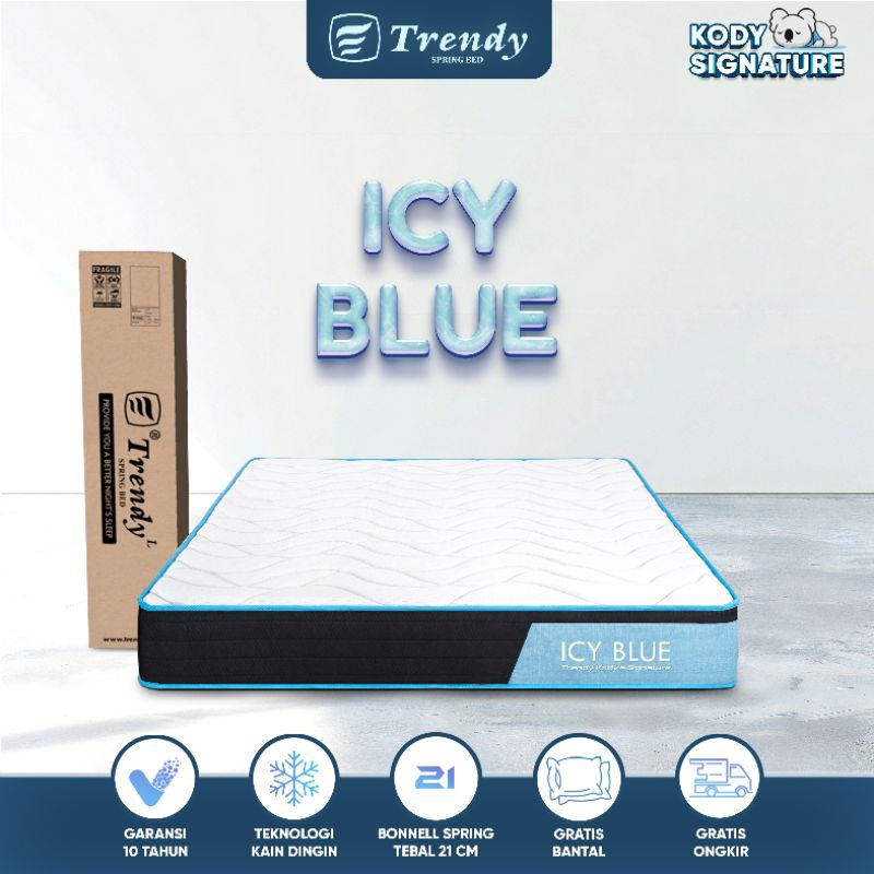Kody Trendy Icy Blue 21cm Latex Kasur Spring Bed Dingin Pegas Bonnell Spring Vacuum Dalam Box