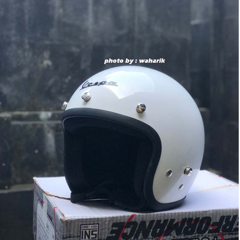 Helm Vespa Xential White SNI M-XL Berkualitas
