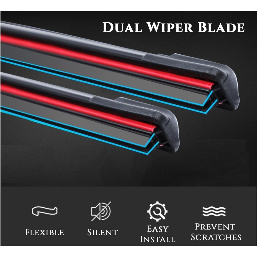AM-59 Dual Wiper Ganda Bahan Karet Universal Untuk Kaca Depan Mobil