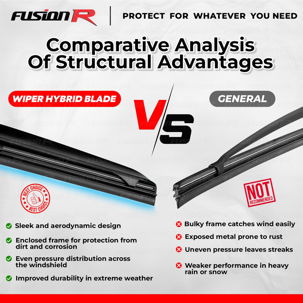 Fusion R | Wiper Kaca Mobil Sepasang ( Paket isi 2 ) Wiper Karet Frameless Hybrid Blade Premium Set