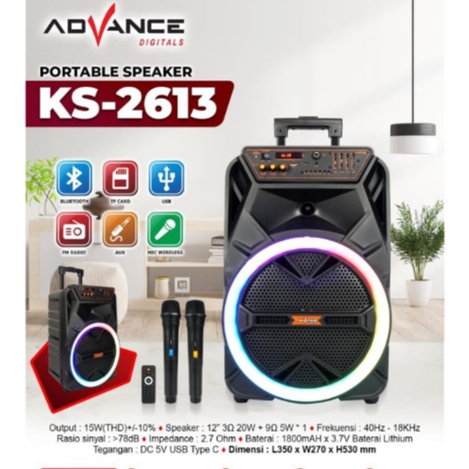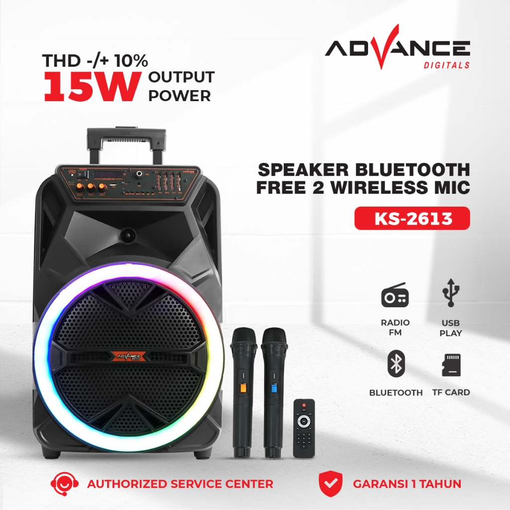 Advance KS2613 Speaker Bluetooth Portable 12 Inch Free 2 Microphone Wireless Garansi Resmi 1 Tahun
