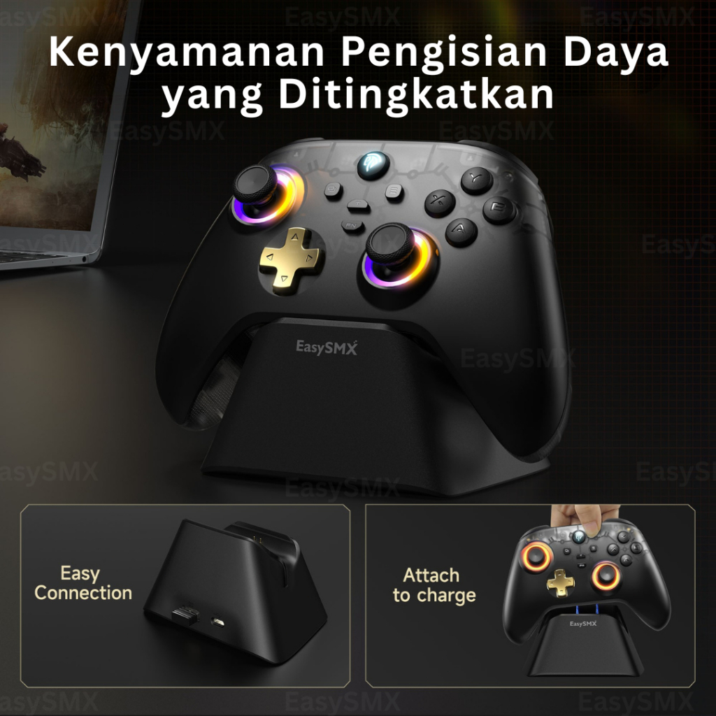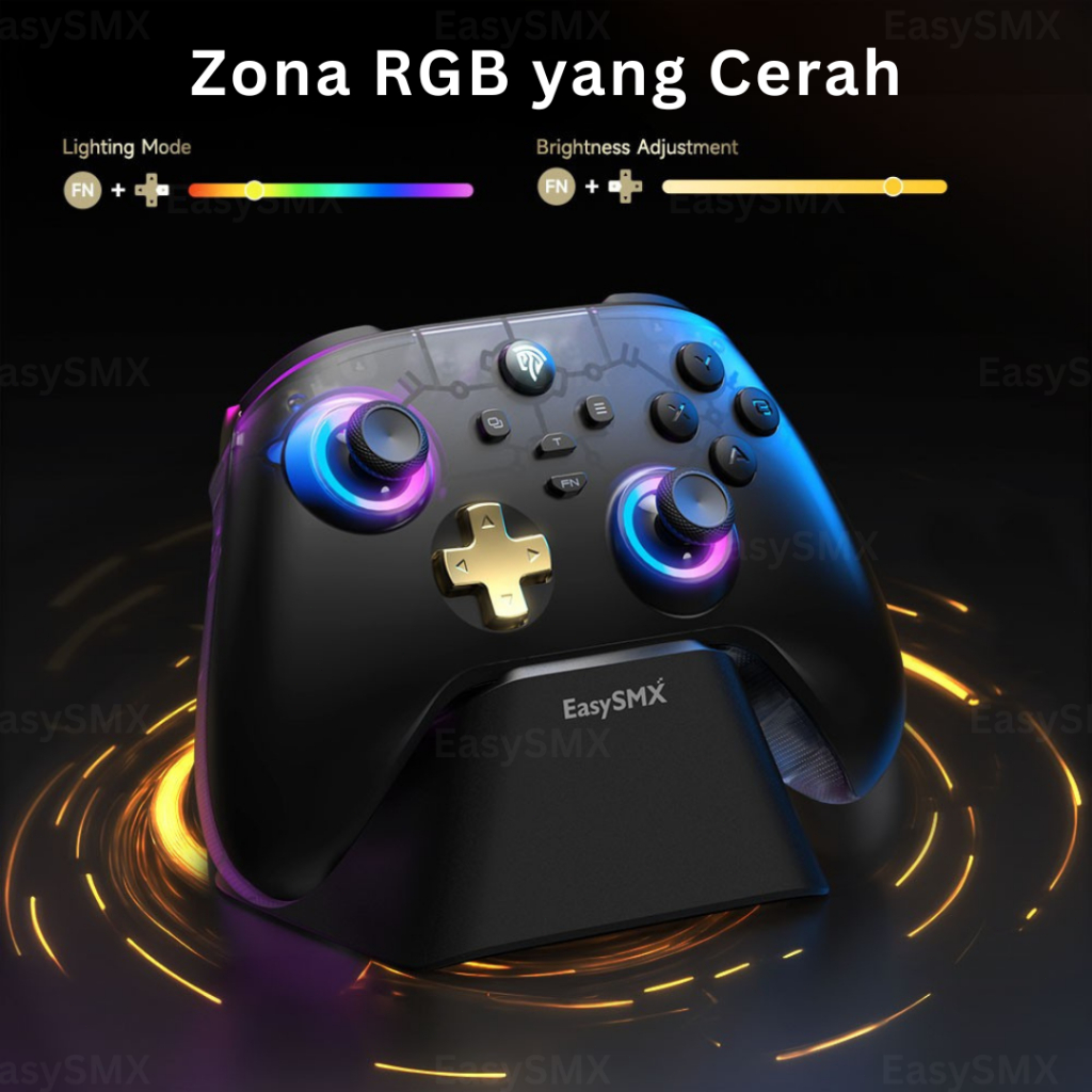 EasySMX D05 Wireless Gamepad Controller + Charging Dock PC, Android, IOS, Nintendo Switch, dengan 1000mAh Baterai dan RGB Hall Effect Joysticks Triggers (Garansi 1 Tahun)