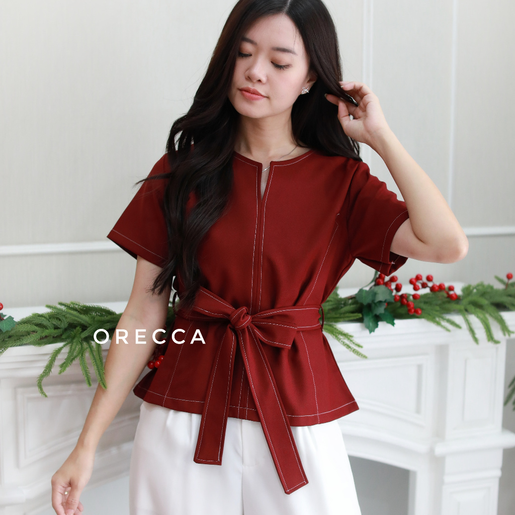 ORECCA - Raven Top Atasan Ikat Wanita Lengan Pendek Natal