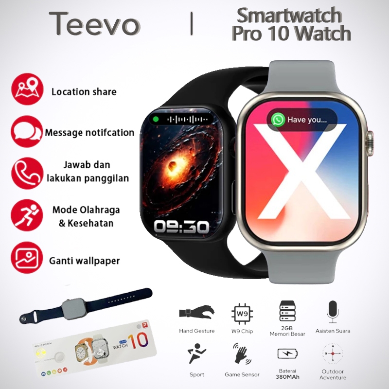 Teevo SmartWatch Pro 10 Watch 2.3 Inch HD AMOLED Display Bluetooth Waterproof Call Pria Wanita Olahraga Jam Pintar Bisa