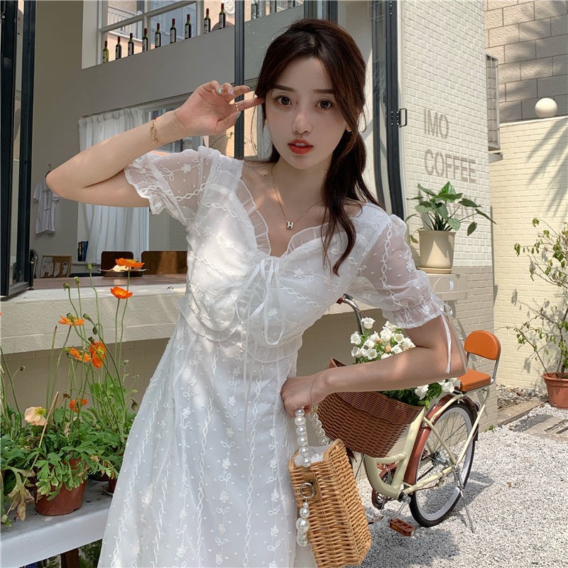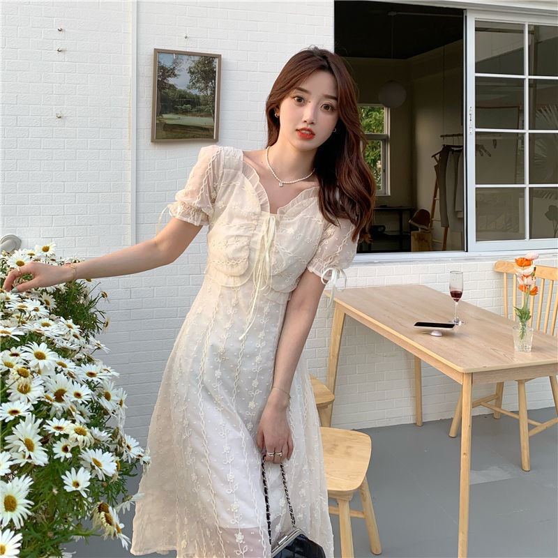 Dess Wanita Korean Variasi Brukat Bunga Dress Kekinian Gaun Wanita Mewah Dress Variasi Brukat Bunga 2Versi Model M367