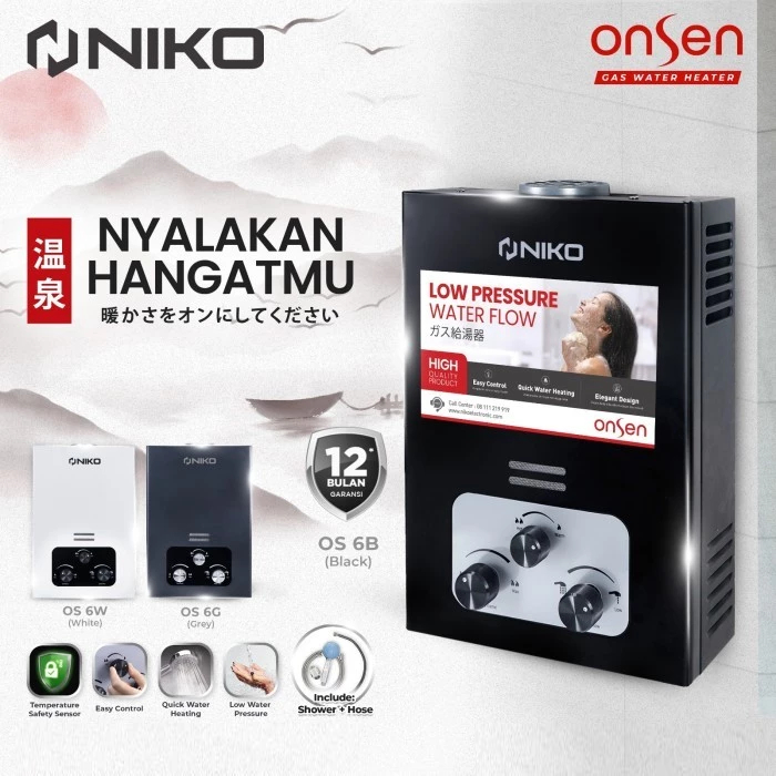 NIKO Gas Water Heater Onsen OS6 LED / OS6 Non LED - Niko Pemanas Air Onsen