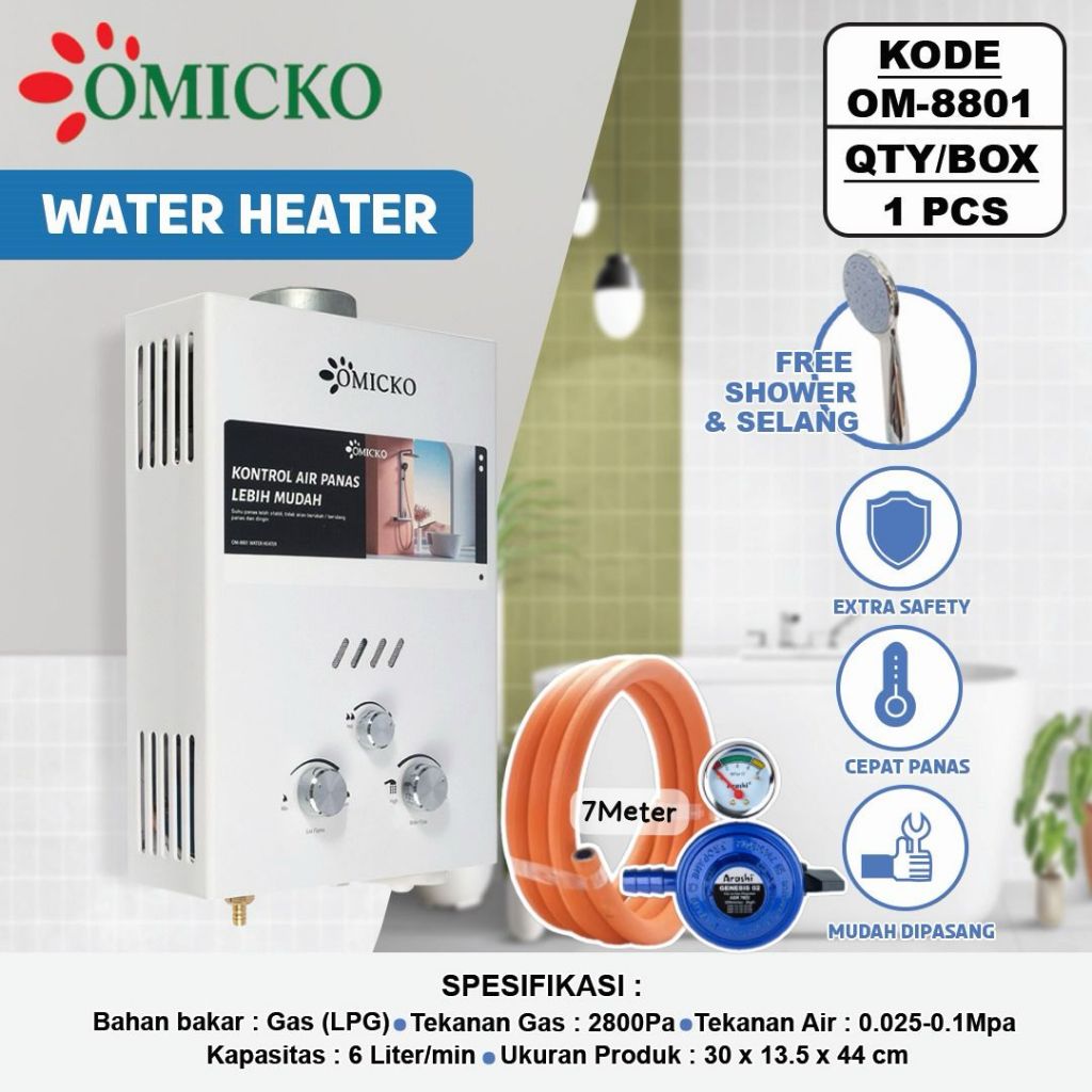 Water Heater Gas Omicko display LED / pemanas air gas Digital dan otomatis - MURAH