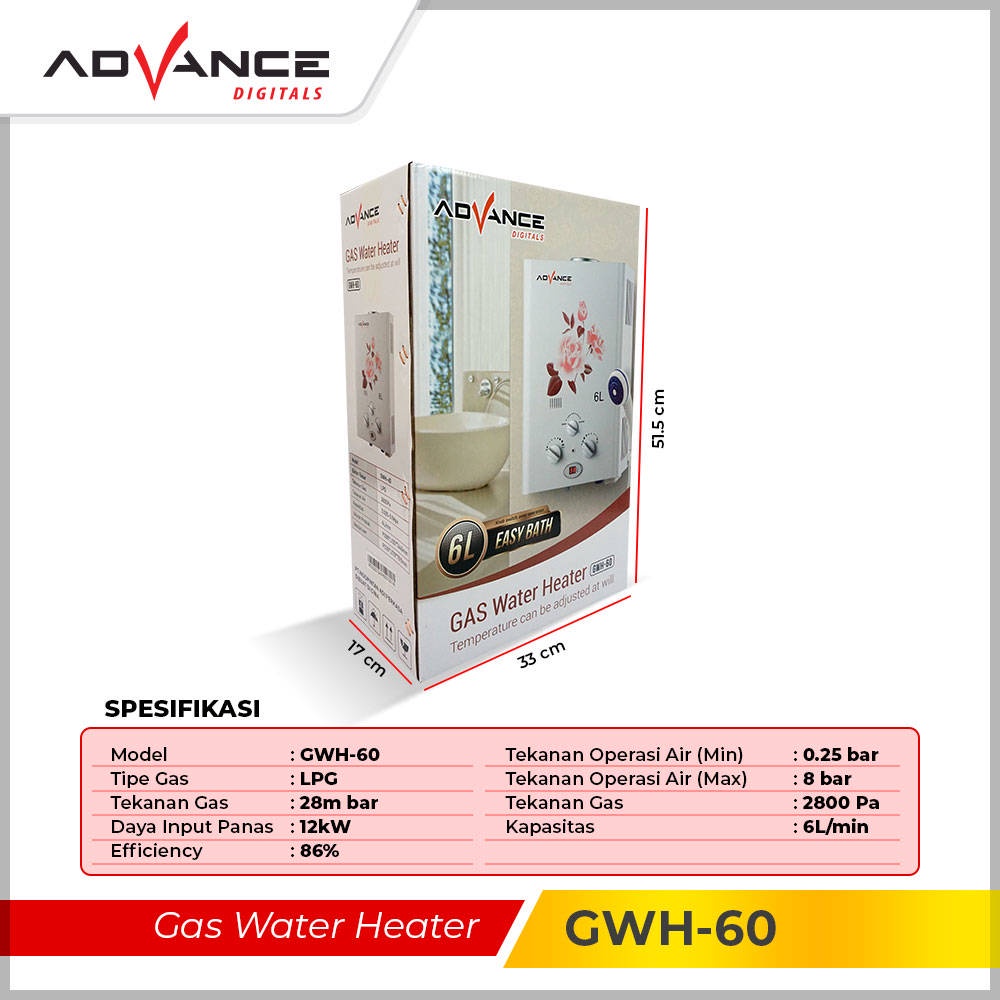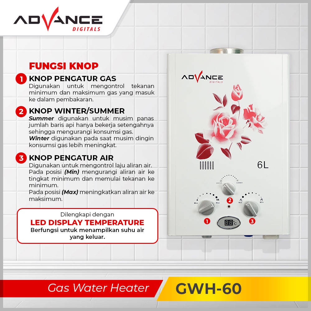 【Garansi 1 Tahun】ADVANCE Water Heater Pemanas Air Gas 6L Pemanas Air Kamar Mandi