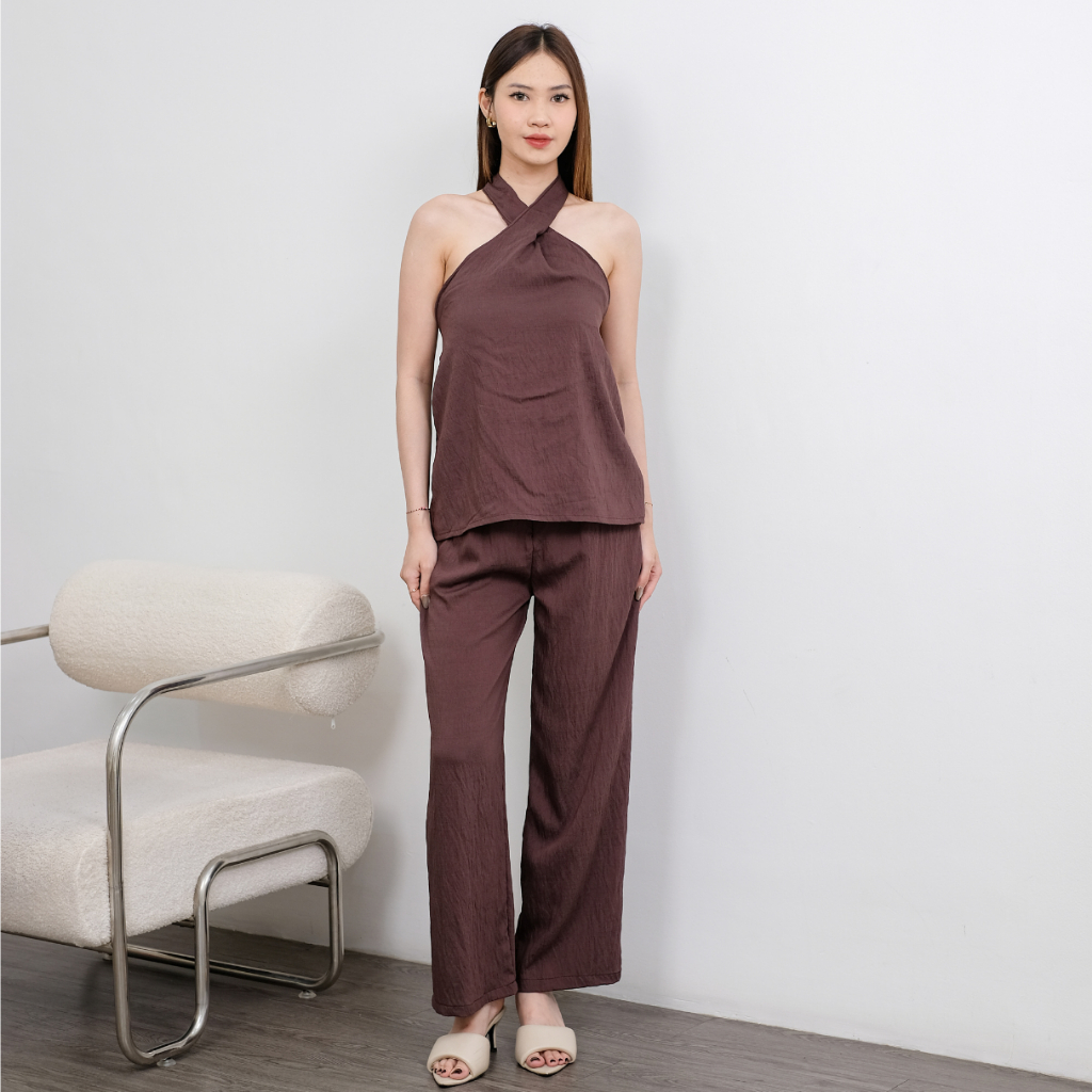 Yemimastuff Minna One Set Set Atasan & Celana Polo Linen Casual Fit Outfit Wanita Kekinian