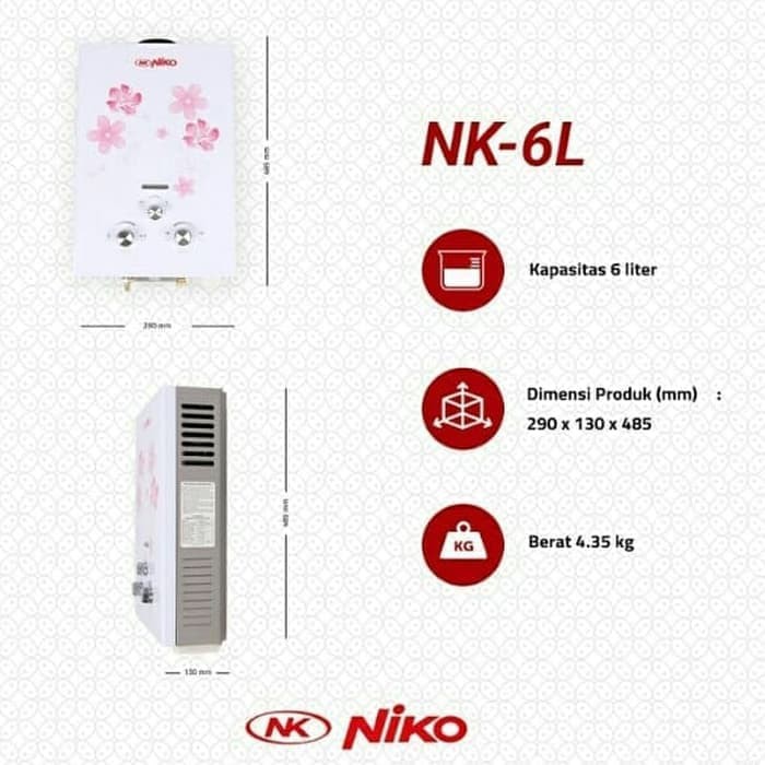 NIKO 6LN Gas Water Heater 6 Liter Pemanas Air Kaca NK6LN