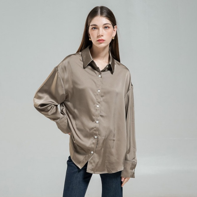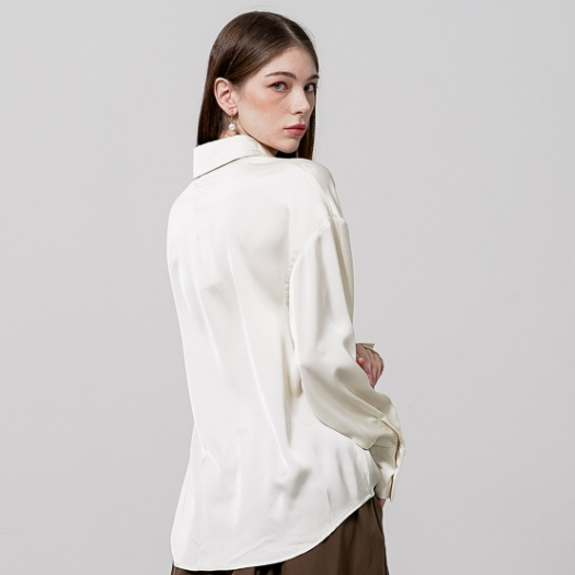This Is April Siena Top Atasan Wanita Kekinian Satin Silk Hijap Friendly Lengan Panjang Ivory dan Olive Formal Look
