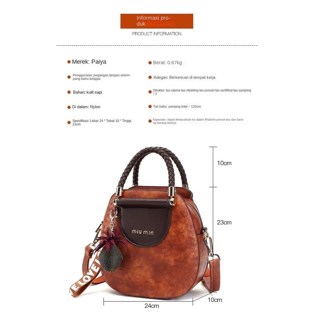 Hong Kong Tas Selempang Kulit Asli Wanita, Tas Kurir Bahu Portabel Retro Kontras Warna is Gaya Korea Serbaguna Musim