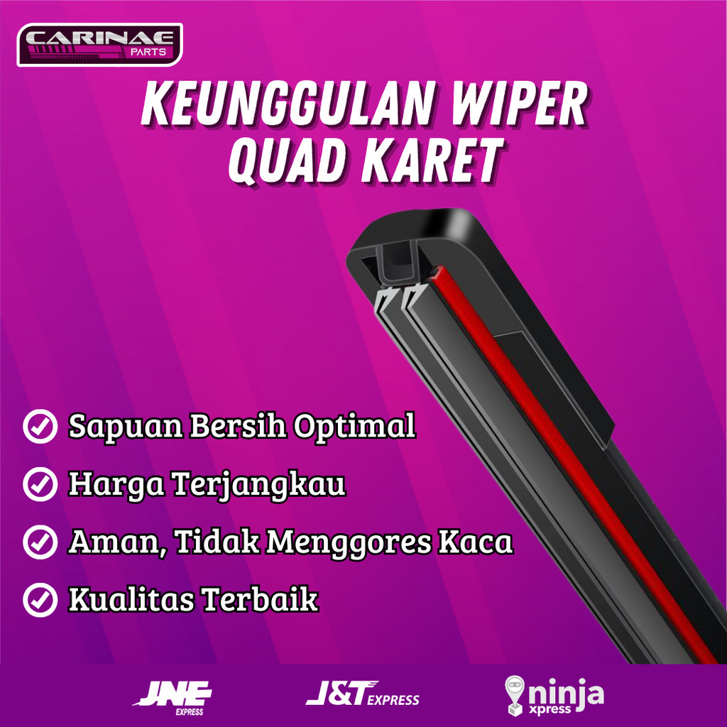 Wiper Mobil Quad Blade 4 karet Frameless Universal Semua Tipe Mobil Kiri Dan Kanan