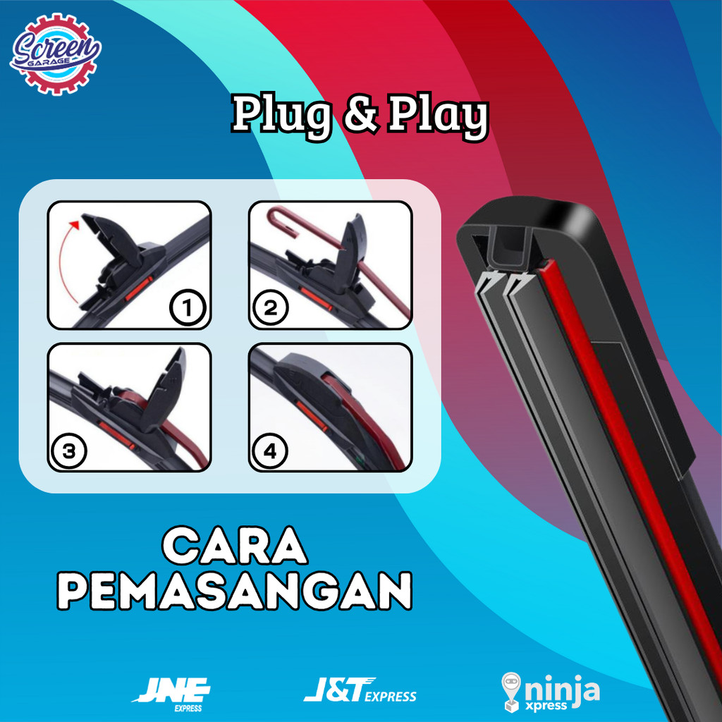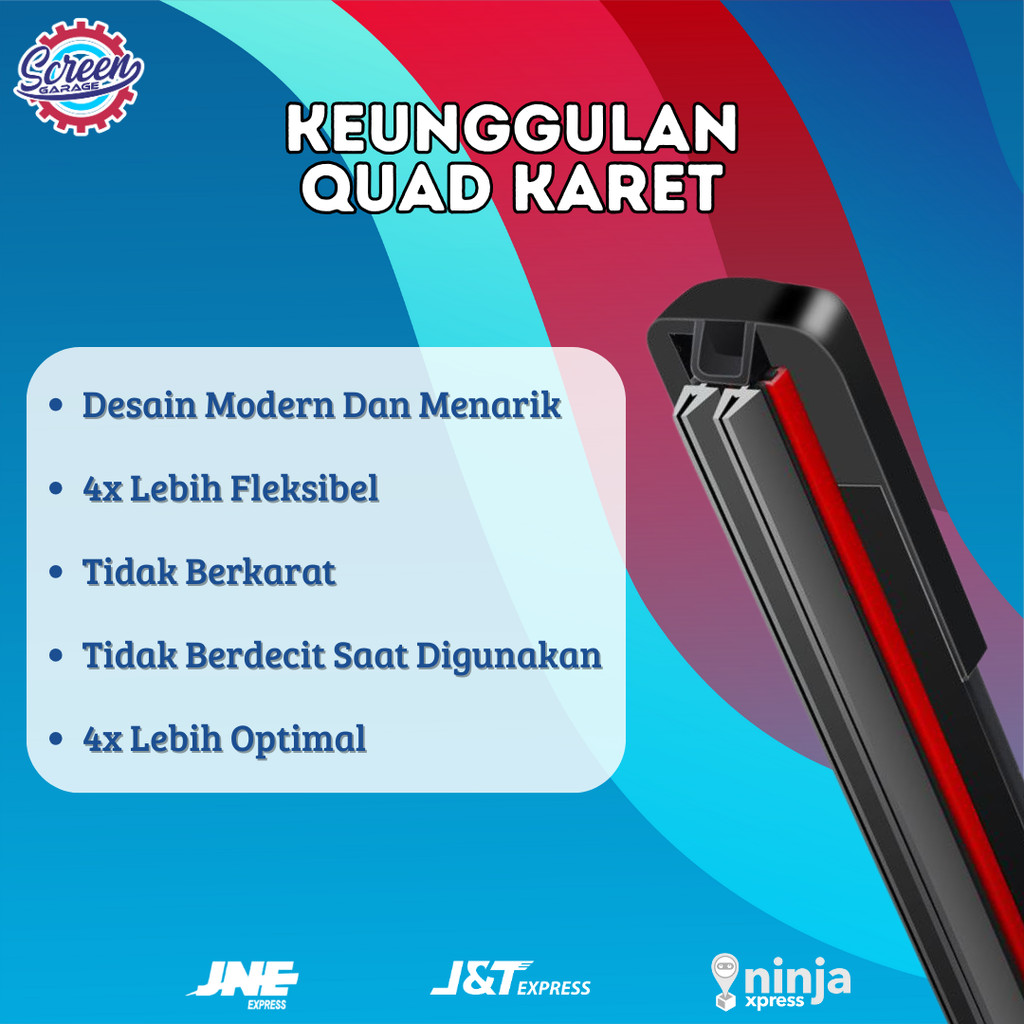 Wiper Depan Kaca Mobil Universal Quad Blade Frameless 4 Lapis Karet 1 SET Sepasang Semua Tipe Mobil