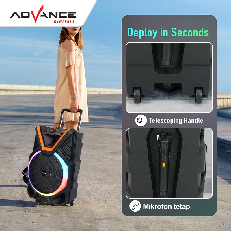 Advance 12 Inch Portable Bluetooth Speaker 15W Free 2 Wireless Mic Speaker Meeting Subwoofers
