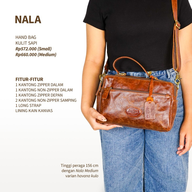 NALA BAG by ABEKANI LEATHER Tas Kulit Wanita Dari Kulit Sapi Asli Dilengkapi Tali Panjang Yang Bisa Dadjust Disesuaikan