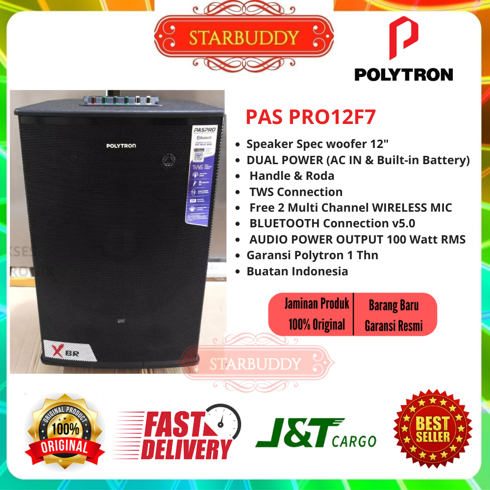POLYTRON PASPRO 12F7 SPEAKER PORTABLE XBR BLUETOOTH WIRELESS KARAOKE 12 INCH