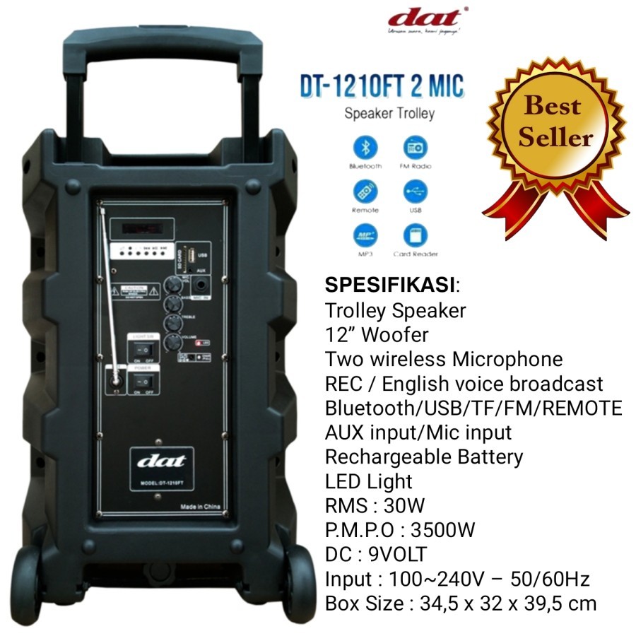 Speaker Bluetooth Karaoke FM Portable DAT DT 1210 FT 12 INCH + 2 MIC