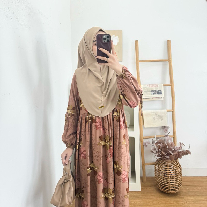 Aurel Dress Pita Lengan Balon Bahan Rayon Diamond by Lemoa