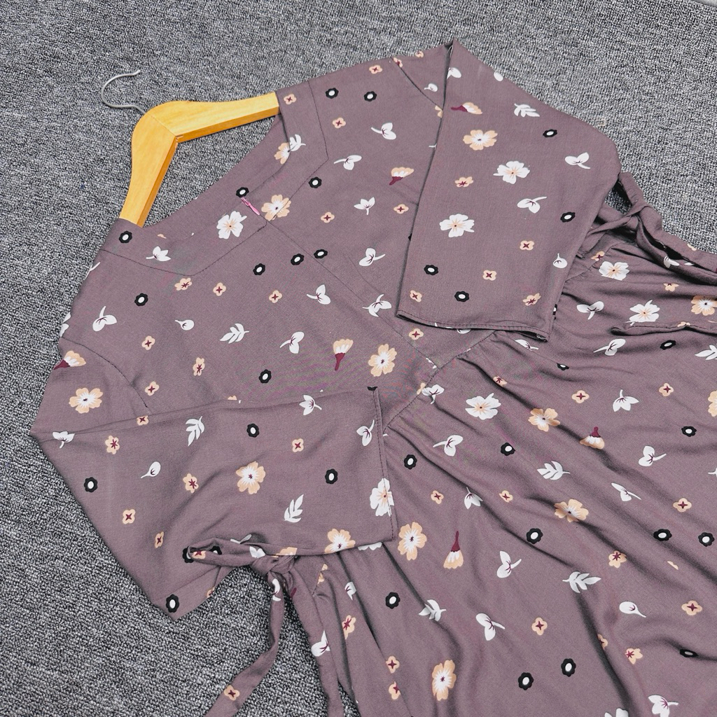 Levi Dress Ruffle Daster Tangan 3/4 Rayon Motif Rempel Dada Terbaru