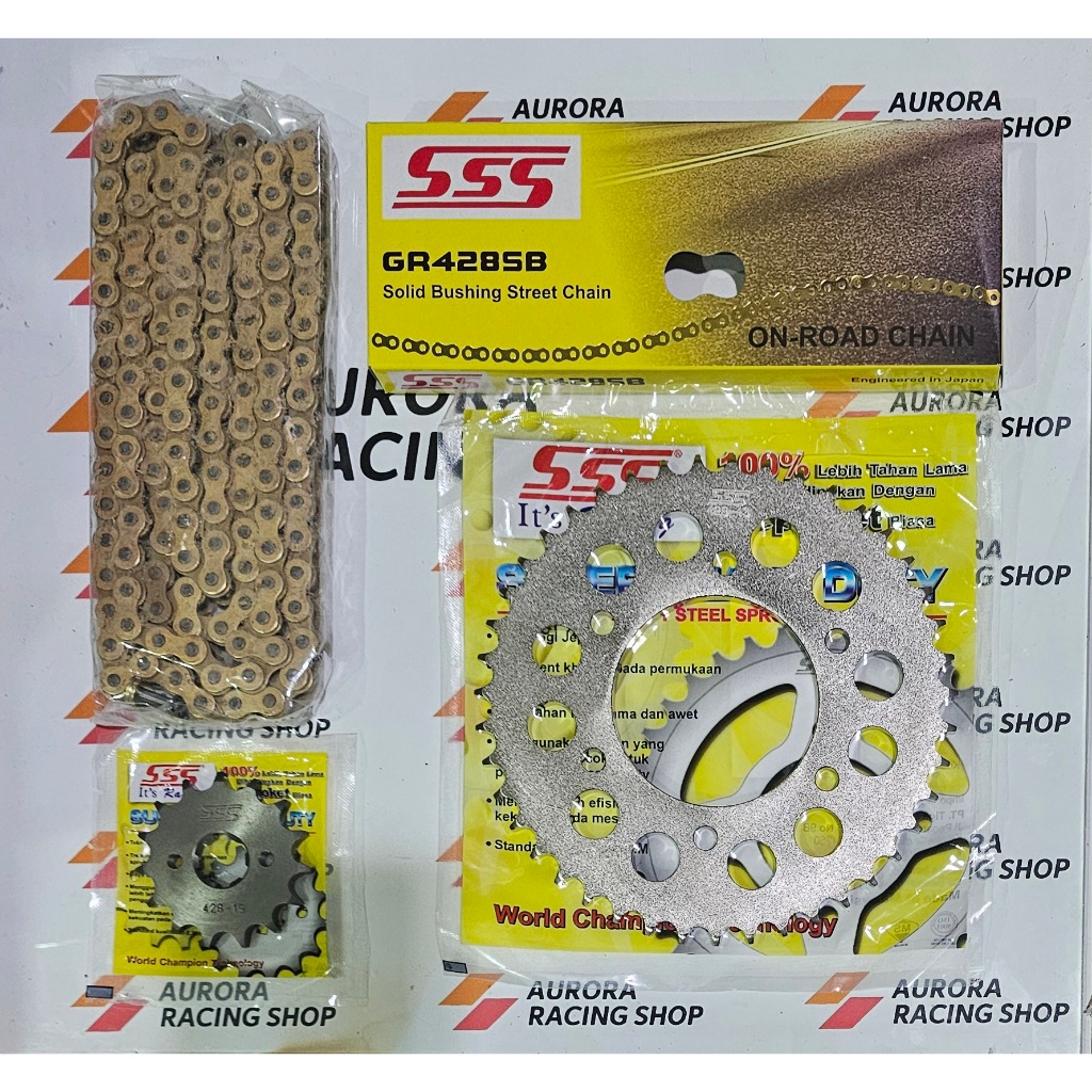 Gear Set Sss Vixion Old / New Vixion / Nvl / Nva / Mx King 150 & Rantai Sss 428 Sb Gold Original