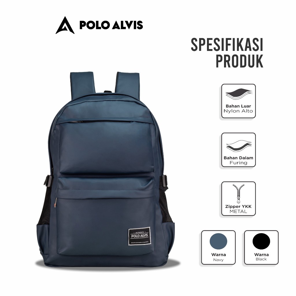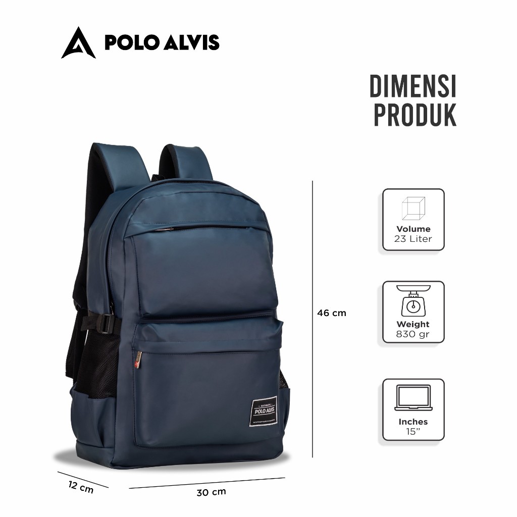 POLO ALVIS - Urban Havana Navy Waterproof Tas Ransel Pria Unisex Anti Air Backpack Laptop 15in Tebal