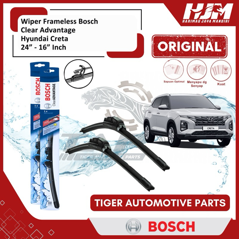 Wiper Blade Frameless Bosch Clear Advantage - Karet Pembersih Kaca Mobil Hyundai Creta 24" - 16" Original