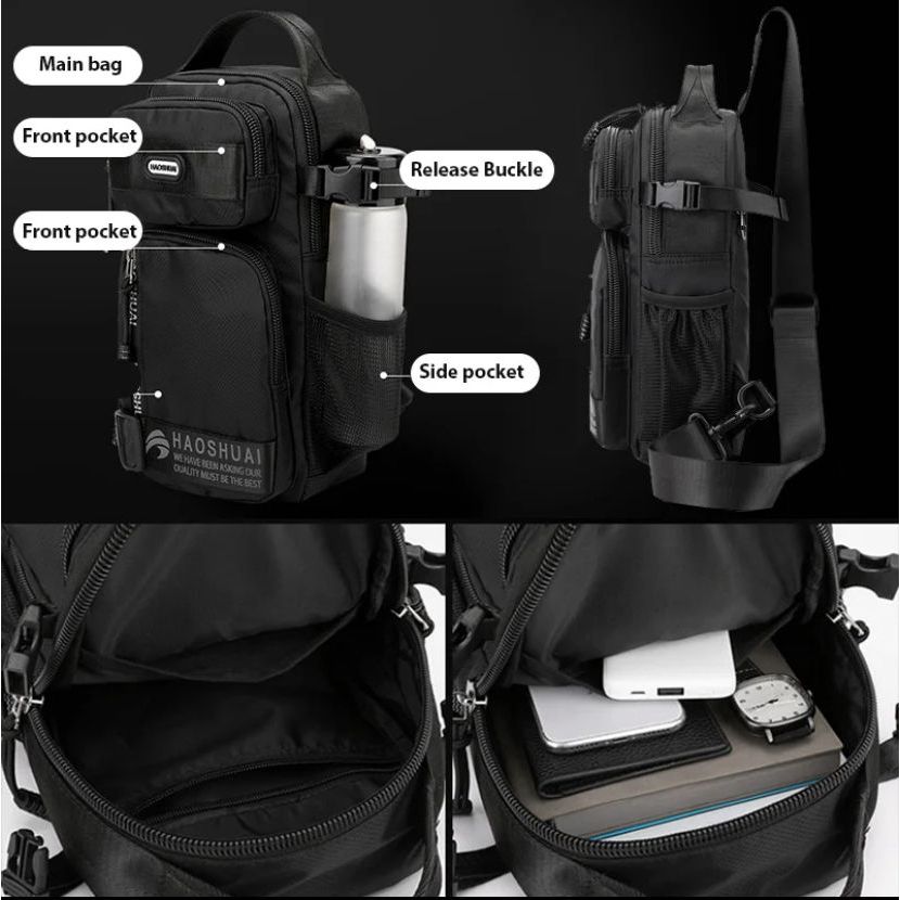 Haoshuai Tas Pria Sling bag Import Tas Selempang Pria Shoulder bag Waterproof Tas Dada Anti Air