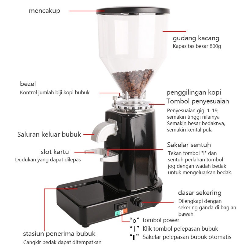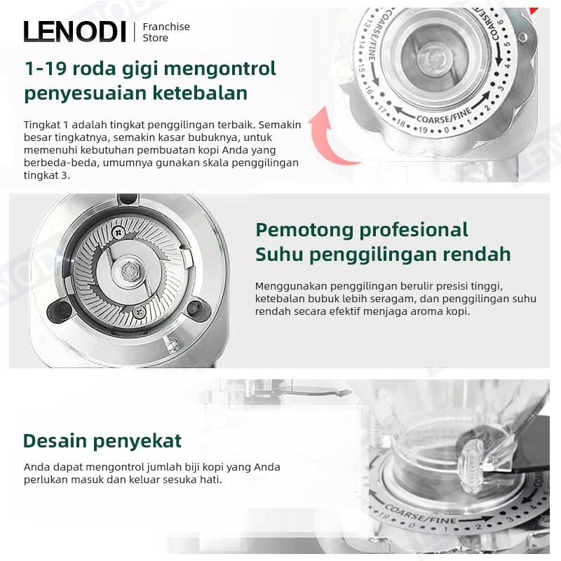 LENODI Grinder Kopi Electric Penggiling Kopi Espresso Otomatis Manual Kantor Rumah, Ketebalan Dapat Disesuaikan, Kecil,