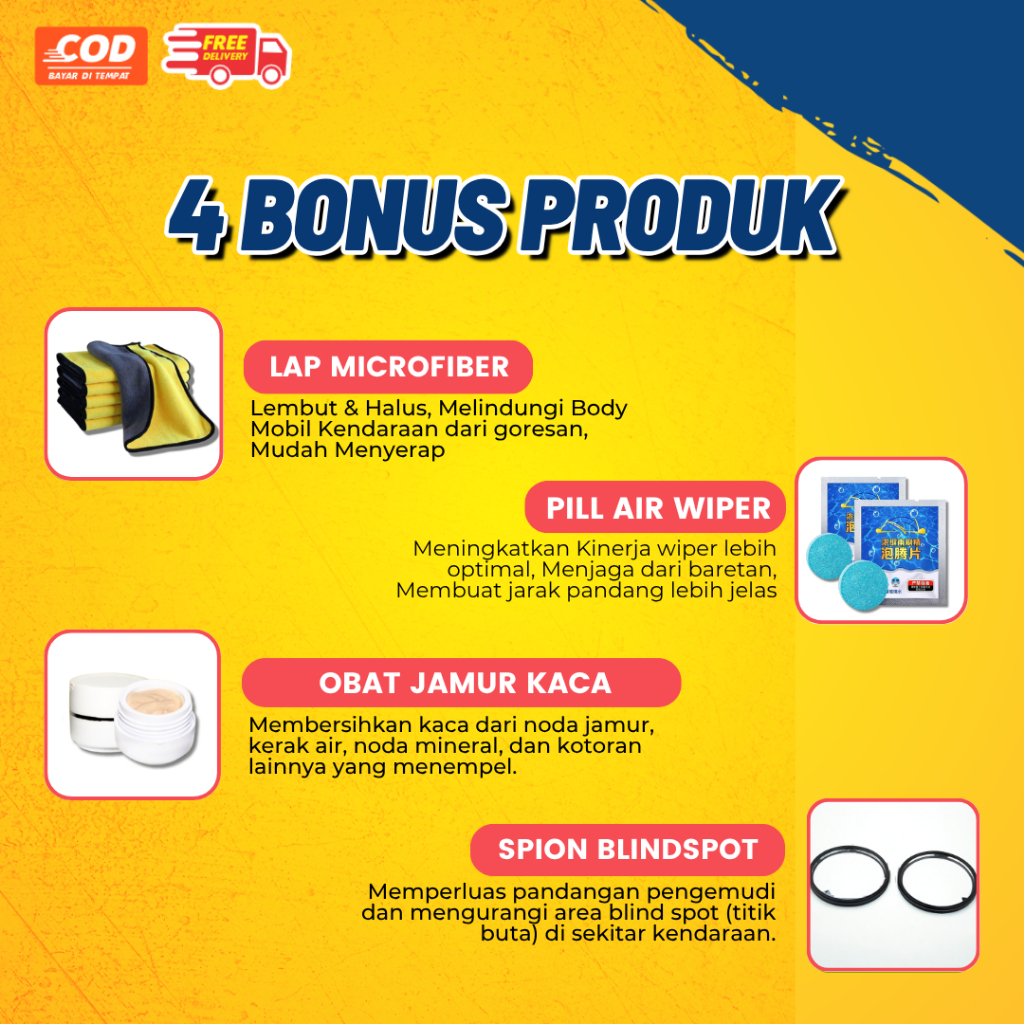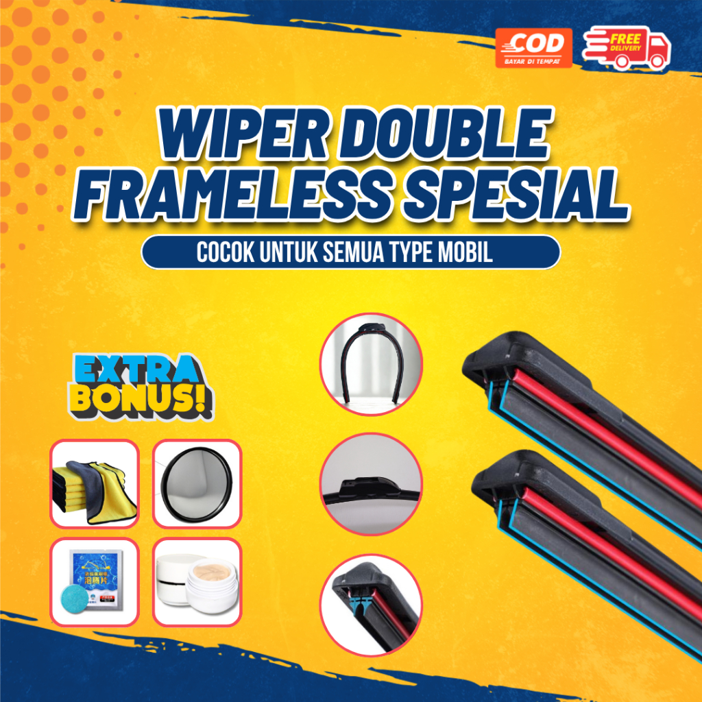 Wiper Mobil Dual Double Karet Frameless Premium + Pil Wiper + Obat Jamur Kaca Mobil Universal Cocok Untuk Semua Tipe Mob