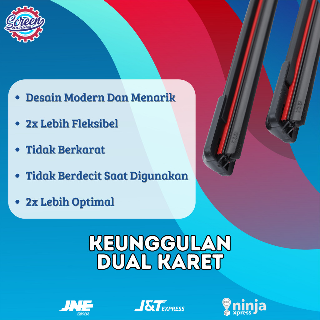 Wiper Depan Kaca Mobil Universal Dual Blade Frameless 2 Lapis Karet 1 SET Sepasang Semua Tipe Mobil