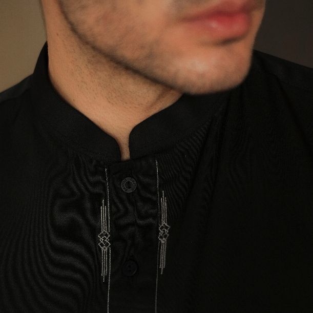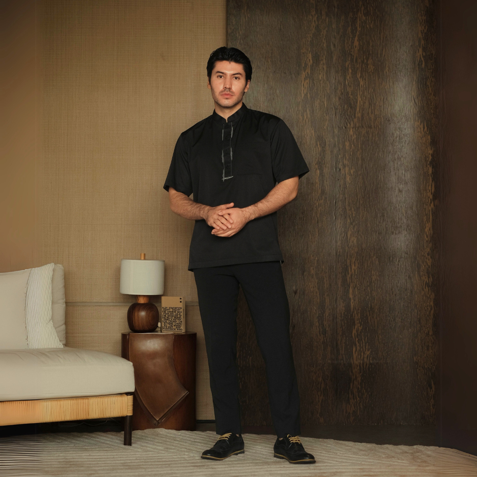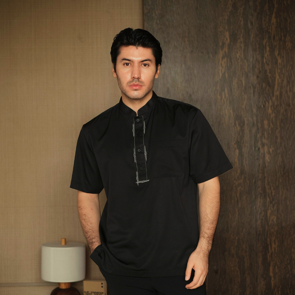 BASTOH Yumna Baju Koko Pria Dewasa Bordir Grey Lengan Pendek