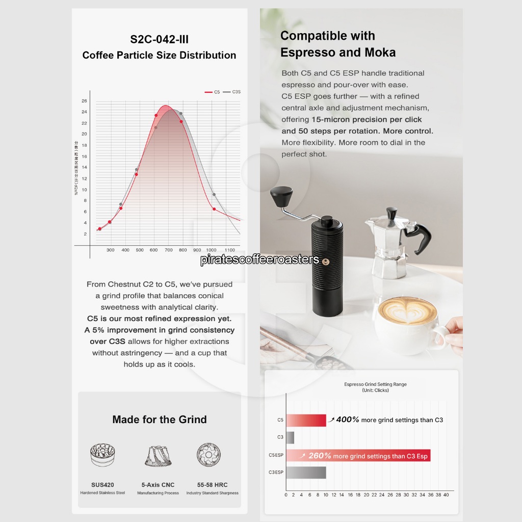 Timemore Chestnut C5 Manual Hand Coffee Beans Grinder Burr S2c 42mm III - Alat Giling Biji Kopi 100 PERSEN Original