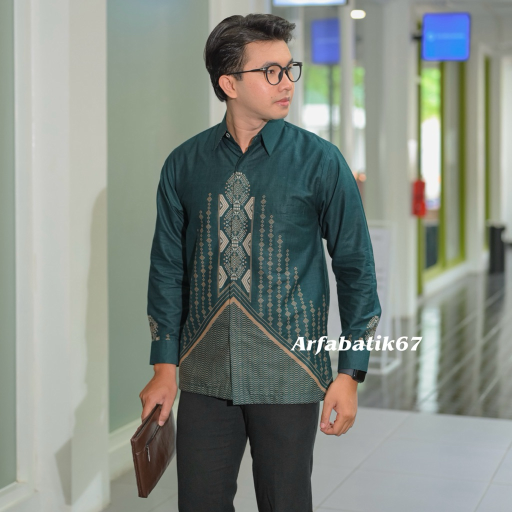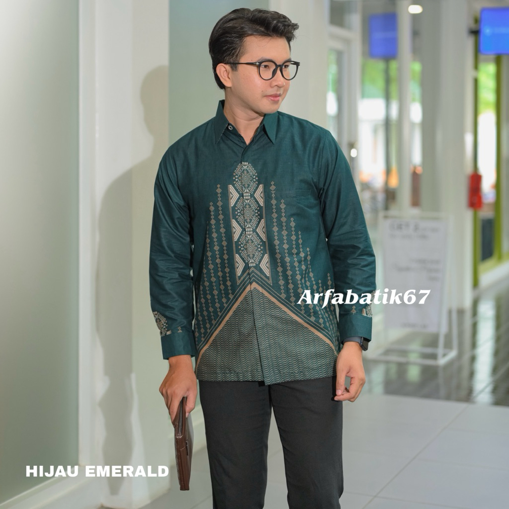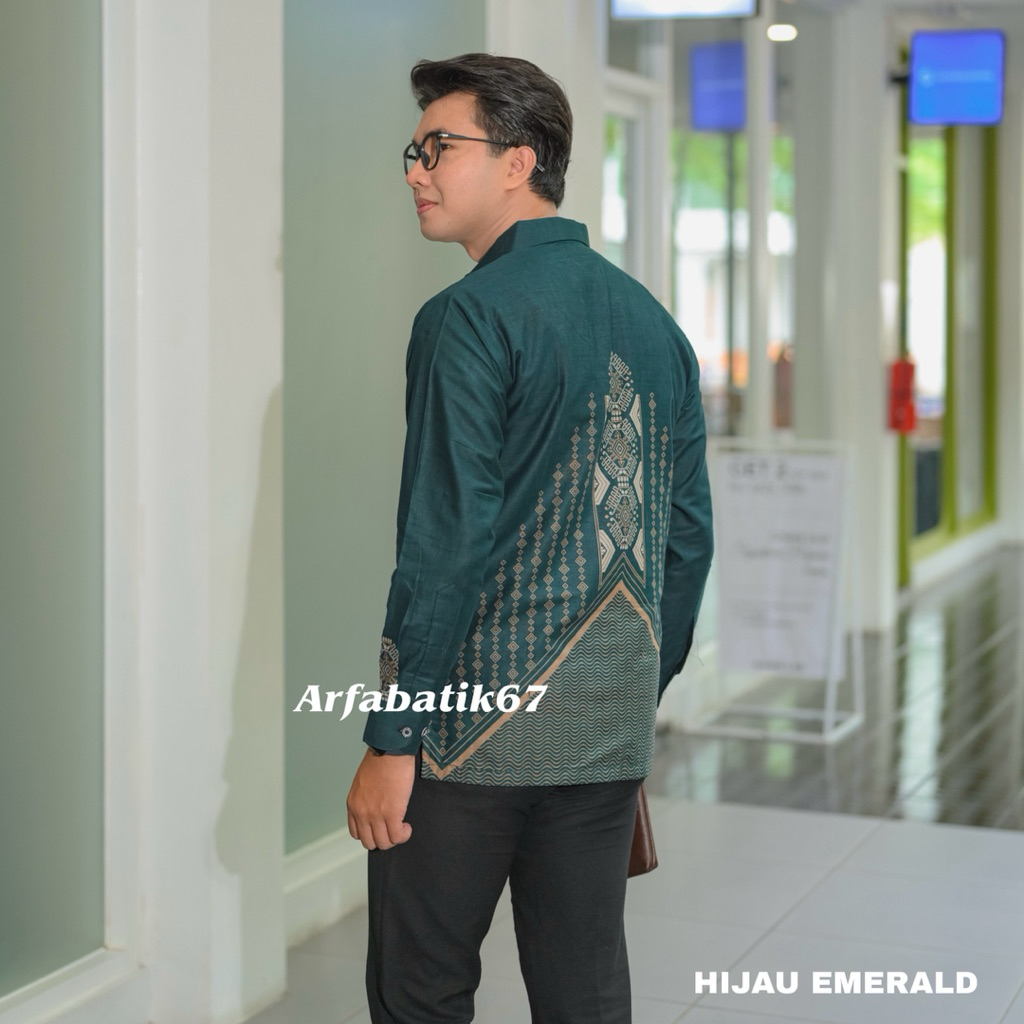 LIONTIN HIJAU EMERALD Kemeja batik pria lengan panjang dan lengan pendek katun pria premium lapis furing hero ready seragaman by arfabatik67