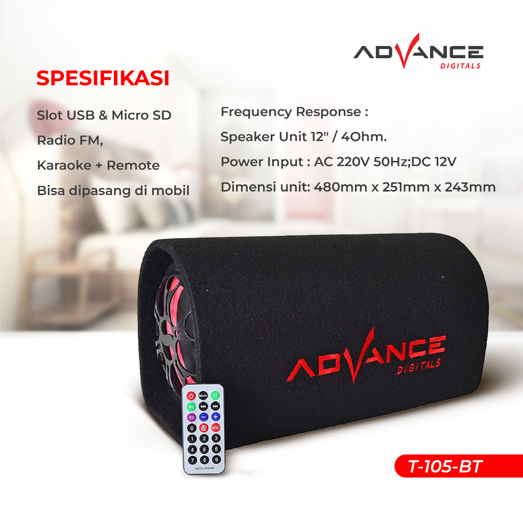 Advance 12 inch Bluetooth Speaker AC/DC Music Box Karaoke USB T105BT Garansi Resmi Advance 1 Tahun (GET FREE Stereo Headset Powerful Sound With Mic ME100)