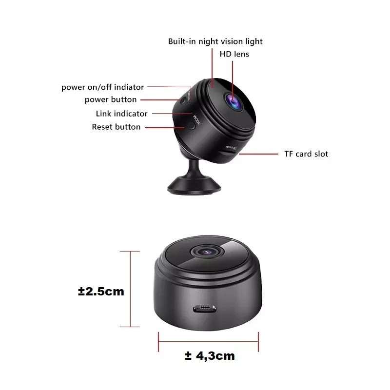 CCTV WiFi A9 Mini Kamera Full HD 1080p 150 Derajat Ukuran 4.3x2.5Cm
