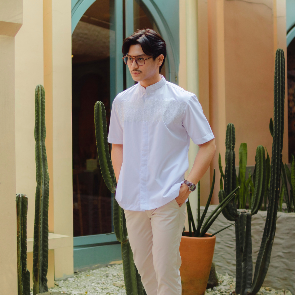 BASTOH Kemeja Koko Pria Bordir Daiyan Putih Lengan Pendek