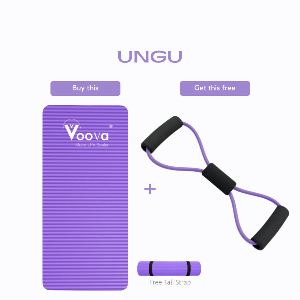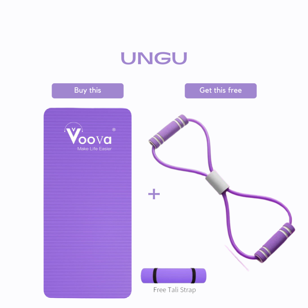 VOOVA Combo 2 in 1 Alat Olahraga dan Matras/ Matras dan Tali Yoga Elastis/ Set Alat Olahraga