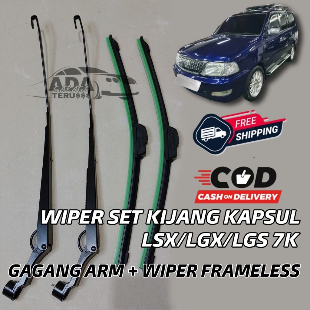 WIPER SET KIJANG KAPSUL 7K LGX/LSX/LGS GAGANG ARM + WIPER FRAMELESS PAKET KOMPLIT