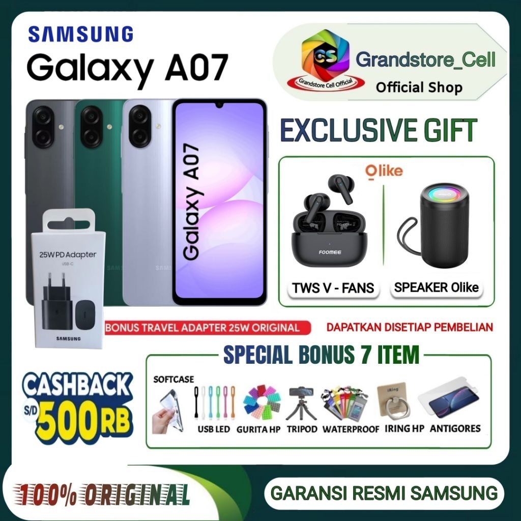 SAMSUNG GALAXY A07 [4/64 GB] [4/128 GB] [6/128 GB] [8/256 GB] - MediaTek Helio G99, Baterry 5000mAh - GARANSI RESMI SAMSUNG INDONESIA