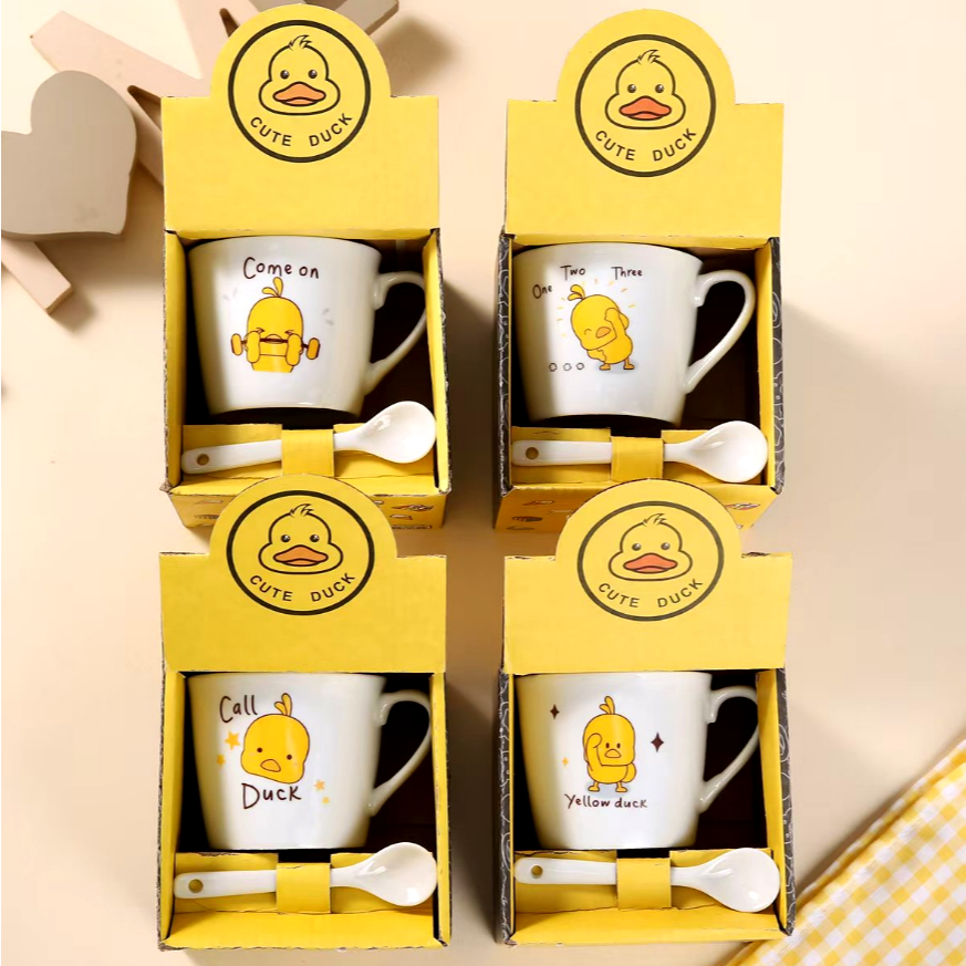 (5PC = 1KG) PB 256 Gelas Keramik Set Sendok /Gelas Emoji / SOUVENIR KADO HAMPERS NATAL / HARI GURU