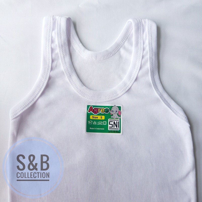 3/6 Pcs Singlet Kaos Dalam Anak Laki Perempuan Merk Agree ST02 & ST04, Warna Putih, Kaos Kutang Anak Bahan Katun Lembut Motif los