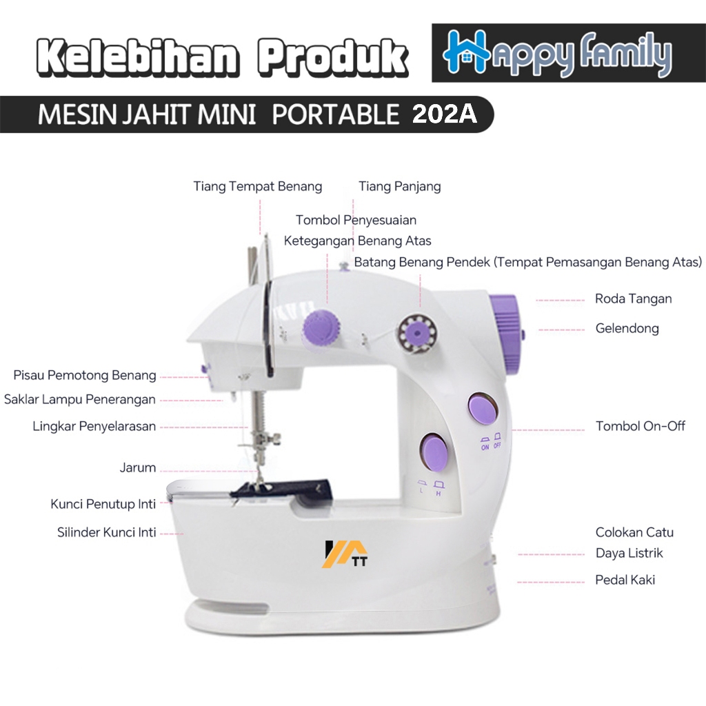 HF Mesin Jahit Mini rtable GT202 A FHSM 202 + Meja Besar + Sewing Kit / Set Menjahit