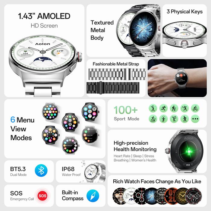 AomledAolon Prime 3 Smartwatch Original Pria Cover Lock Kompas Metal Case AOD Jam Tangan Pintar
